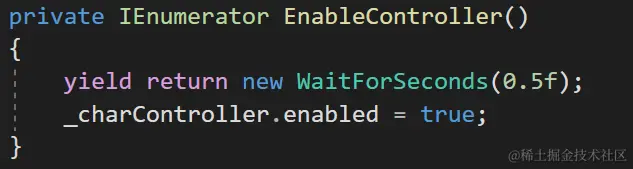 - 启动一个循环程序,在一定时间后启用角色控制器。