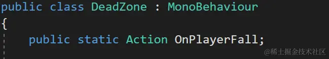 接下来,让我们创建一个新的公共静态Action Delegate,它将代表玩家的每次跌倒。