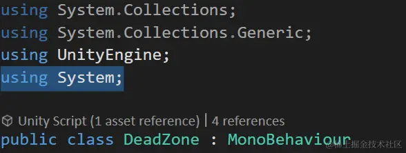 然后,让我们打开脚本,在顶部包括系统 命名空间。