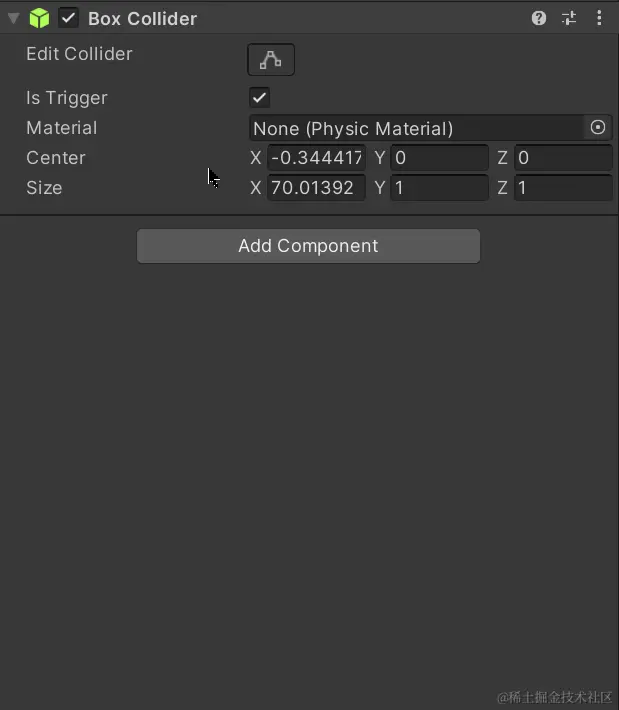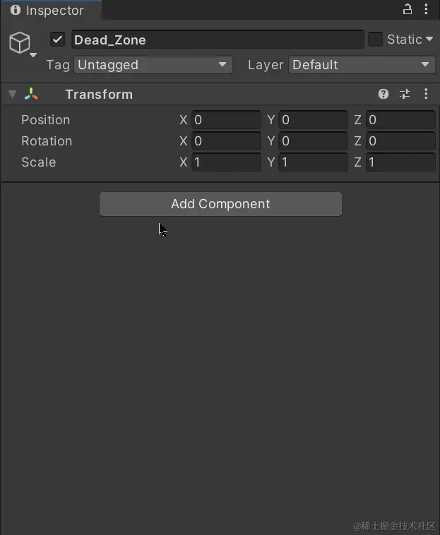 然后,让我们创建一个新的游戏对象,其中包括一个盒子碰撞器组件,并启用了 是触发器属性,以表示玩家将失去一条生命的区域。