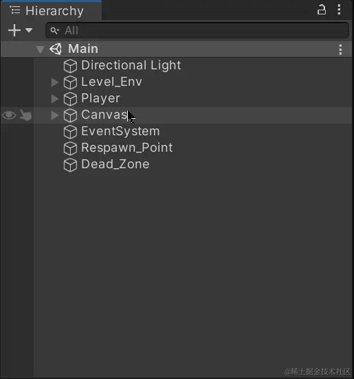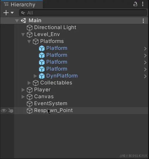 所以,为了处理玩家坠落的情况,让我们先创建一个空的游戏对象,代表场景中重生玩家的点。