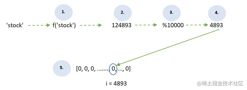 - 我们把 "股票 "这个词放在我们称之为 "散列函数 "的地方。