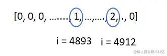 索引=4912的元素被增加了1,变成了2。