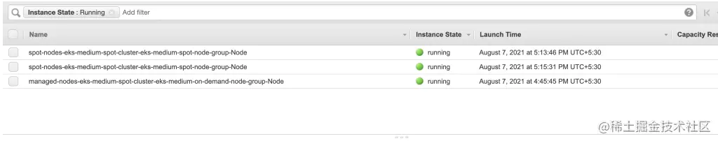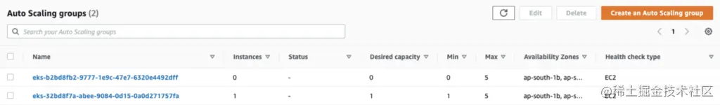 - eks-medium-spot-节点组。 这个节点组被创建时有0个实例。是的,你已经看到了这一点。这个节点组将有0个现货实例,最多可扩展到5个实例。