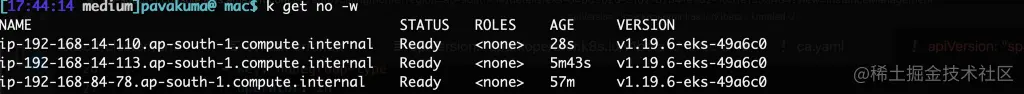 你现在应该看到,集群自动oscaler pods检测到了正确的自动缩放组。好了,现在让我们检查一下节点。