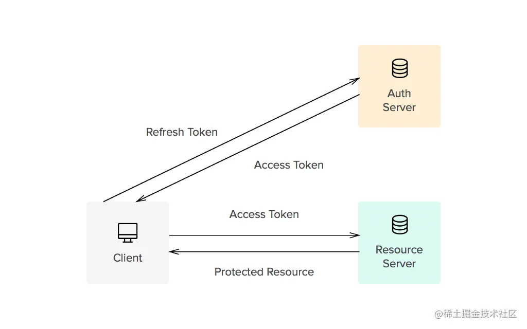 当访问令牌过期或失效,但应用程序仍然需要访问受保护的资源时,应用程序面临的问题是如何获得一个新的访问令牌,而不强迫用户再次授予权限。为了解决这个问题,OAuth 2.0引入了一个叫做刷新令牌的工件。刷新令牌允许应用程序在不提示用户的情况下获得一个新的访问令牌。刷新令牌只返回到授权服务器,访问令牌则返回到(RS)资源服务器。