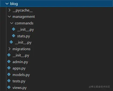 - 在blog/management中加入**__init__.py**,在blog/management/commands目录中加入__init__.py**+ stats.py**文件。