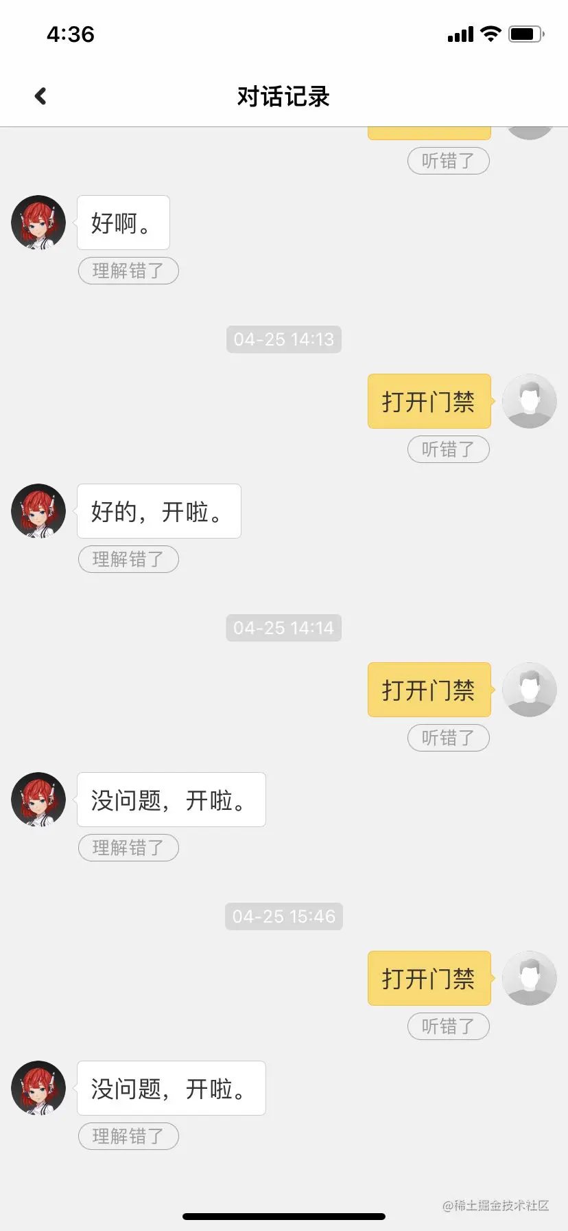 此时,你对小爱说,打开门禁,它应该会说打开了之类的话。当然我的小爱比较皮,说了句 “小事儿”。