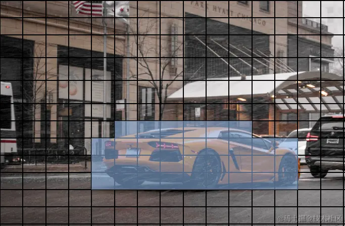 标记为蓝色的单元格预测界线盒的中心位于该单元格内。作者的图片