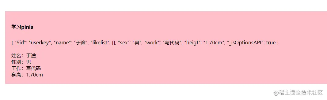 <div>工作:{{ userStore.work }}</div>
