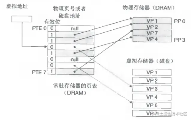 可以认为虚拟空间都被映射到了磁盘空间中,(事实上也是按需要映射到磁盘空间上,通过mmap),并且由页表记录映射位置,当访问到某个地址的时候,通过页表中的有效位,可以得知此数据是否在内存中,如果不是,则通过缺页异常,将磁盘对应的数据拷贝到内存中,如果没有空闲内存,则选择牺牲页面,替换其他页面。