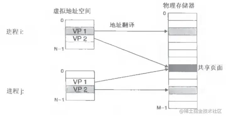当不同的进程使用同样的代码时,比如库文件中的代码,物理内存中可以只存储一份这样的代码,不同的进程只需要把自己的虚拟内存映射过去就可以了,节省内存