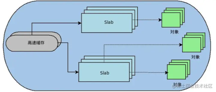 - slab缓存负责小块物理内存的分配,并且它也作为高速缓存,主要针对内核中经常分配并释放的对象。