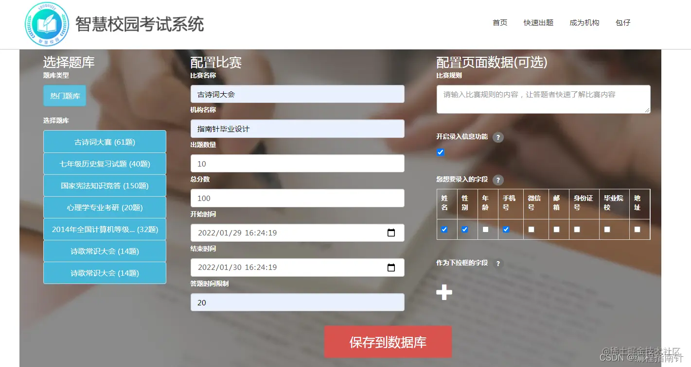 以上是智慧校园比赛系统的主要内容