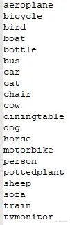 通过 voc.data 中的 names 来调 .names,.names 中即为目标检测的类别名称,上面的 classes 为类别数,来看一下 voc.names: