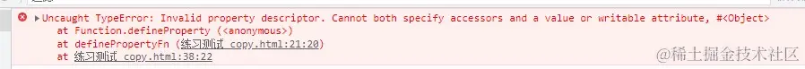 注意: Object.defineProperty的属性不能够与get和set一起写,否则会报错;
