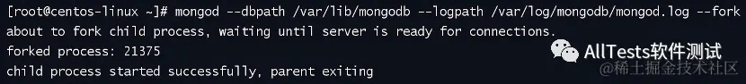 mongod --dbpath /var/lib/mongodb --logpath/var/log/mongodb/mongod.log --fork