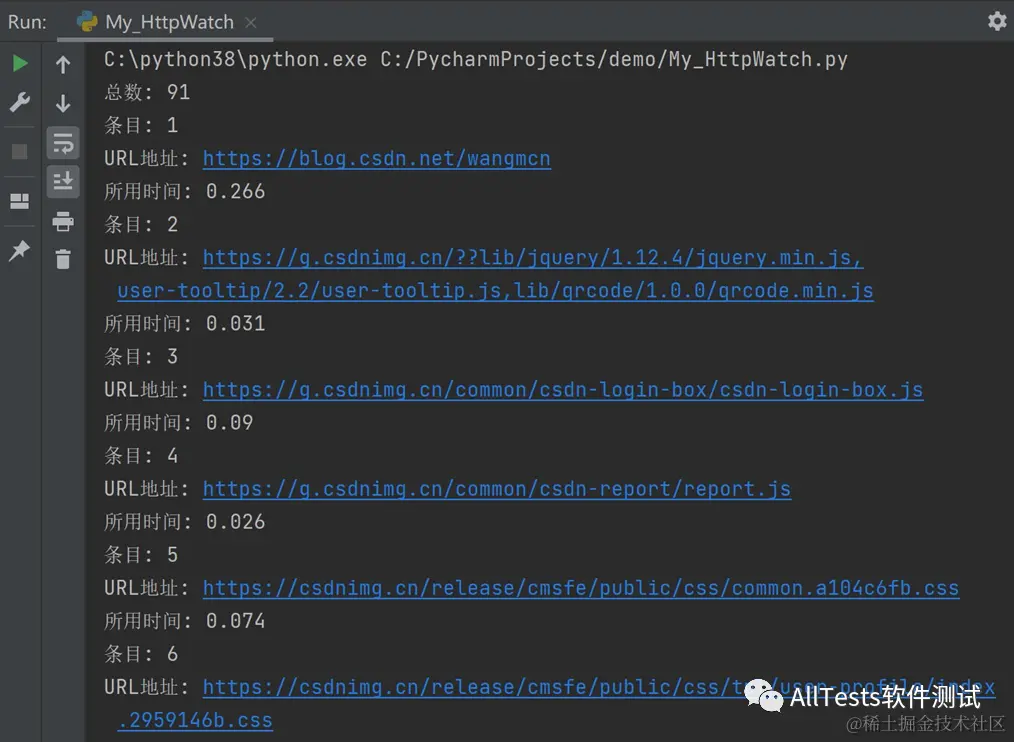 (2)通过控制台打印的日志,可以看到页面所使用的响应时间。