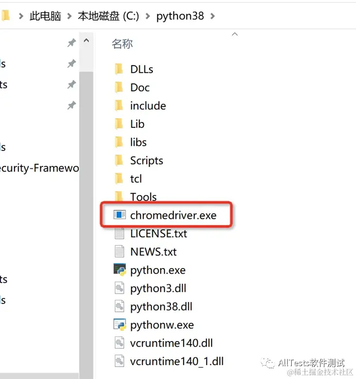 下载后的 chromedriver.exe 拷贝到 Python 安装目录下。