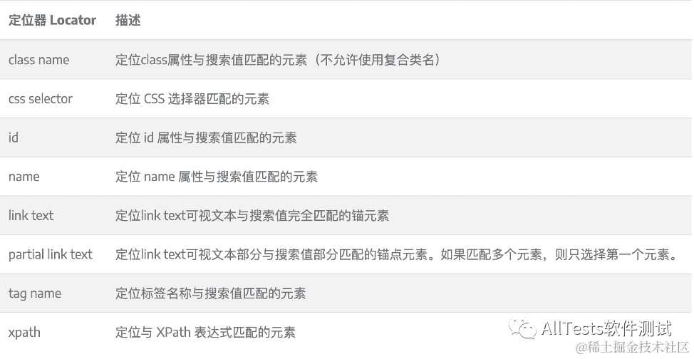 3、Selenium 保证元素成功率是通过元素的定位,当然它的定位方法很多,一定能有合适的。但是在自动化工程的实施过程中,高质量的自动化测试不是只有测试人员保证的,需要开发人员规范开发习惯,如给页面元素加上唯一的 name,id 等,这样就能大大地提高元素定位的准确性。当然如果开发人员开发不规范,我们在定位元素的时候尽量使用相对地址定位,这样能减少元素定位受页面变化的影响。只要我们元素定位准确,就能保证每一个操作符合预期结果。