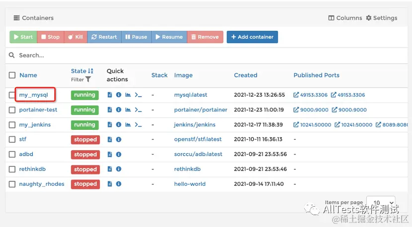 选择某个容器,点击进入,可进行重启、停止、删除等操作。