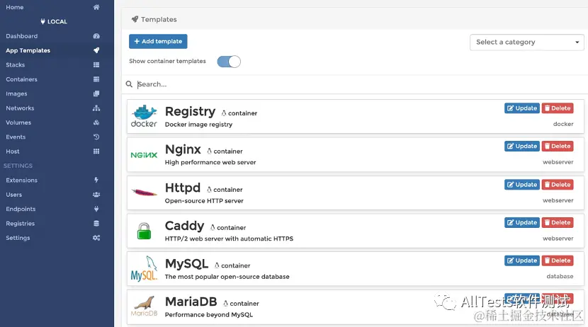点击左侧App Templates,显示现成可用的模板,或者也可以进行添加模板。