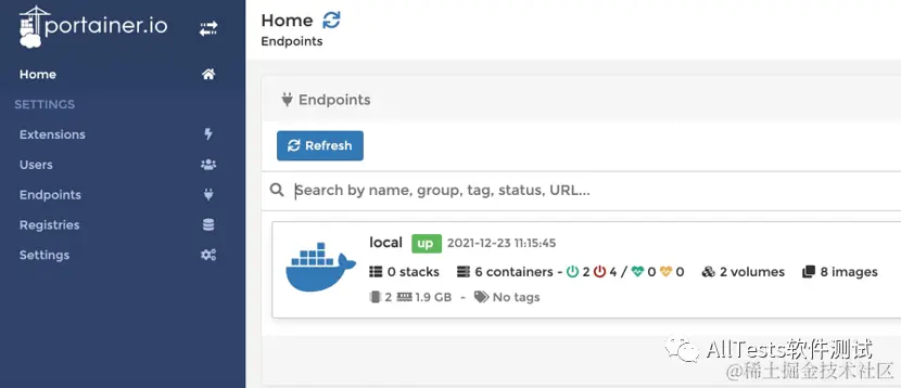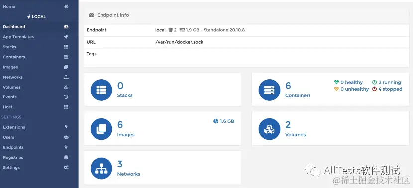 点击左侧Dashboard,可查看端点信息,例如容器的数量、状态等等。