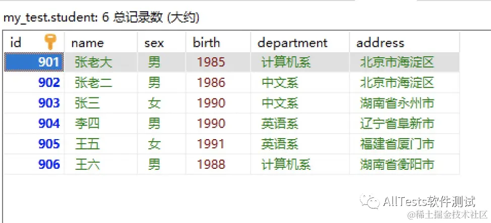 可以看到 my_test 库的 student 表,目前有6条数据。