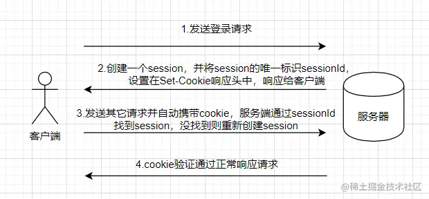 - 服务端接收到请求,验证 cookie 信息,比如通过 sessionId 来判断是否存在会话,存在则正常响应。