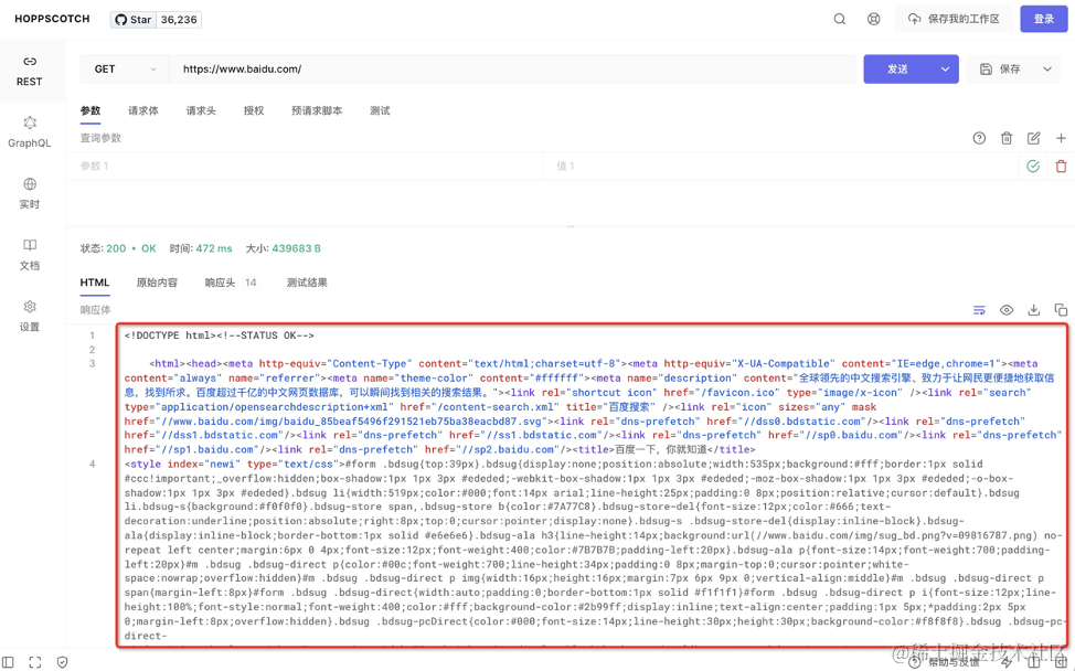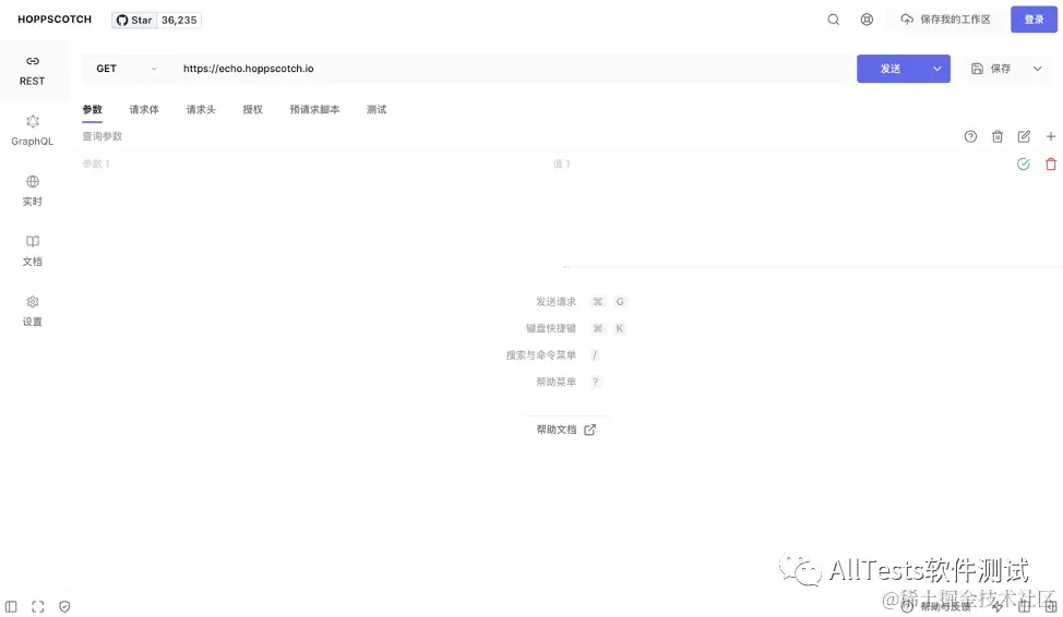 Hoppscotch 是一种可以通过 Web 服务的方式构建 API 访问的工具,使用 Node.js 开发,采用简约的 UI 设计,能实时发送和获取响应值,它的的前身是 Postwoman。
