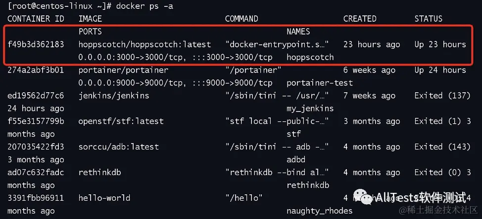 查询运行状态,hoppscotch 已启动。