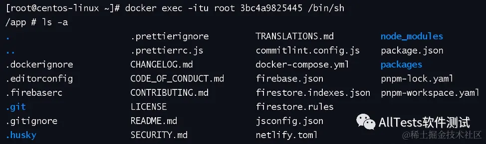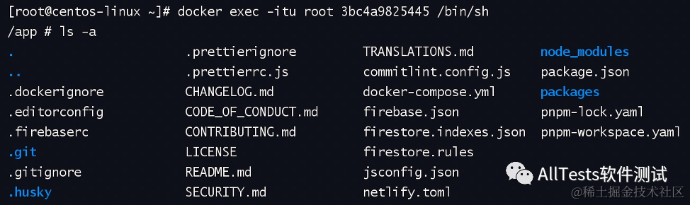 例如 docker exec -itu root 3bc4a9825445 /bin/sh