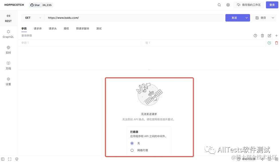 注意,如果提示:无法发送请求,无法到达 API 端点。请检查网络连接并重试。