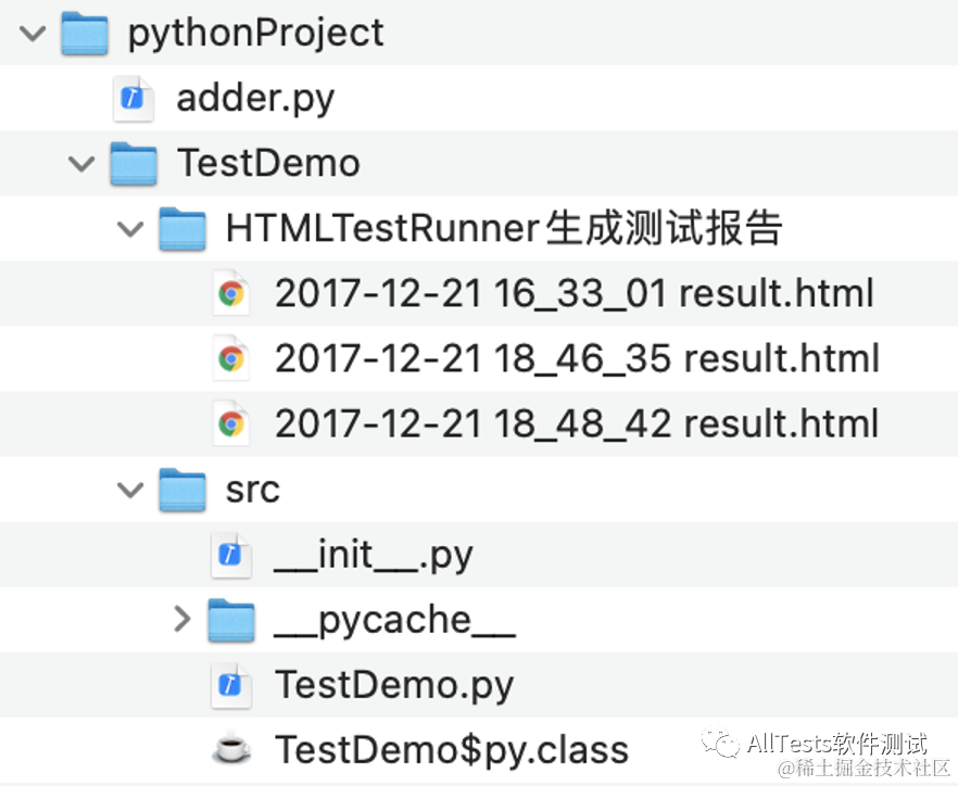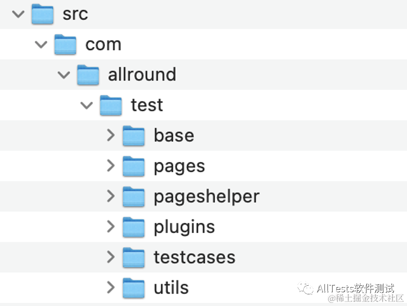 src 目录存放基类、页面元素、方法封装、报告插件、测试用例、公共方法等。