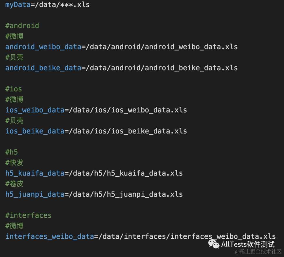 data.properties 存放测试数据,分为:Android、iOS、H5、接口。