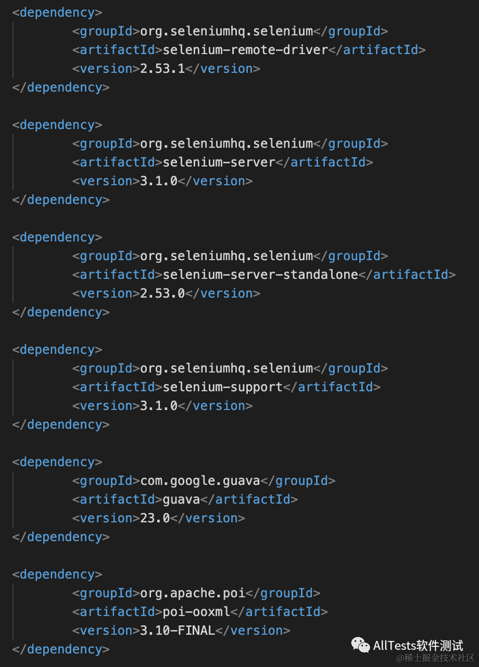 主要依赖的包 testng、appium、jxl、log4j、selenium、mysql-connector-java、okhttp、allure-testng-adaptor、mongo-java-driver 等。