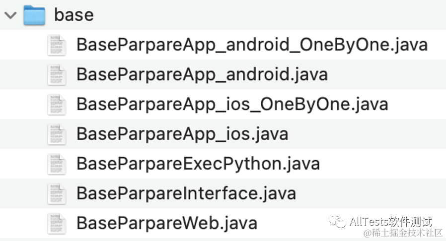 (1)base 目录存放基类,根据不同的场景分类,可执行 APP(Android、iOS)、Web、接口、Python 脚本。