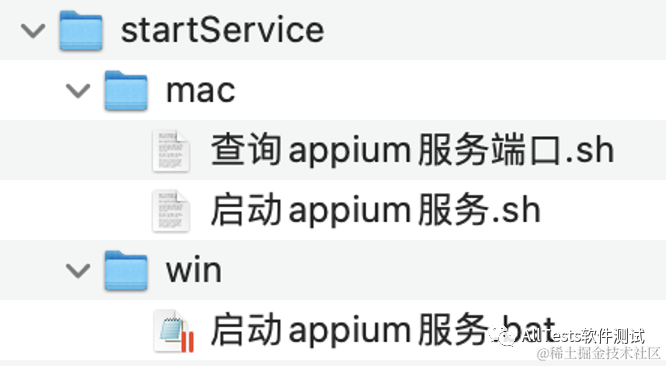 startService 目录存放可在命令行执行启动 Appium 服务的命令。