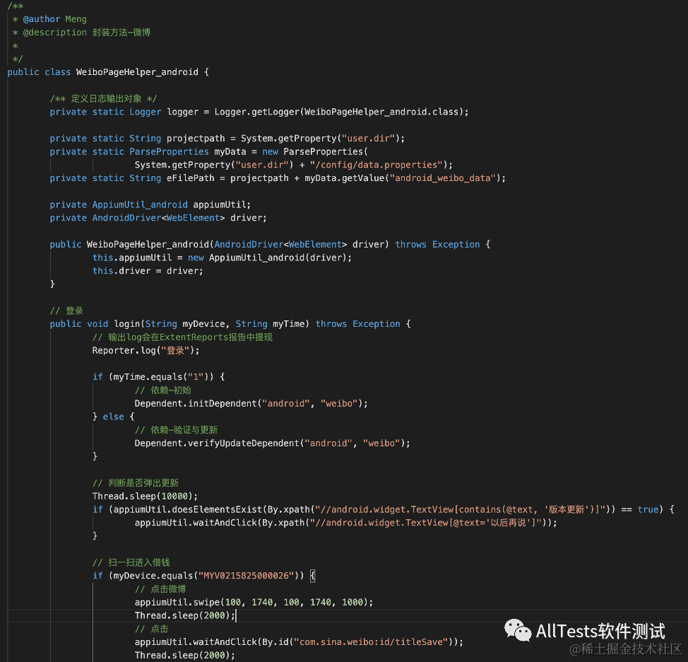 例如:WeiboPageHelper_android.java(封装登录,部分代码)