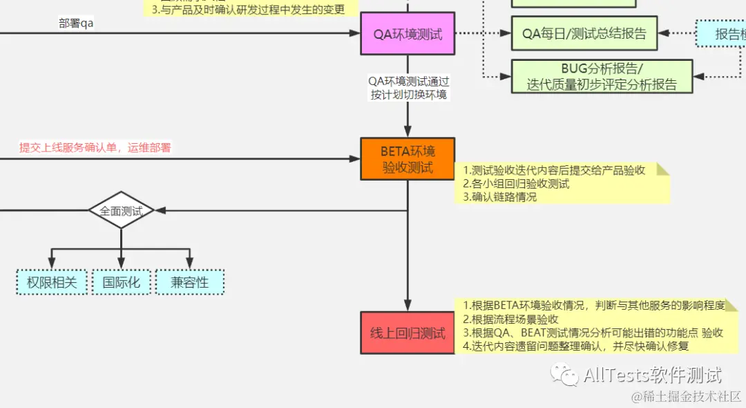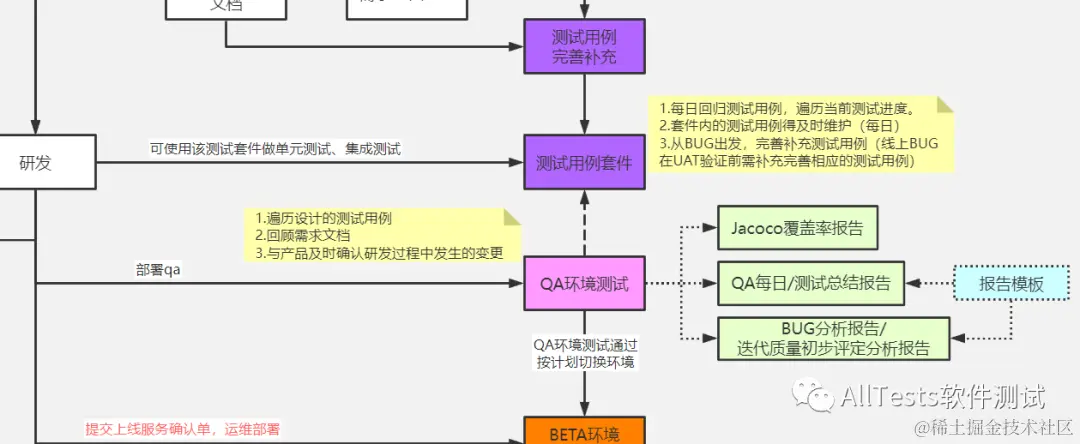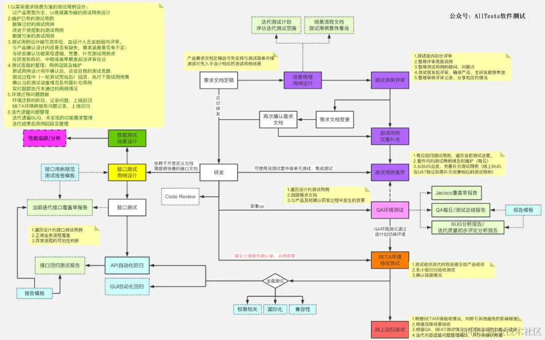 一张图了解软件测试流程 Meng 2022-04-25 135 阅读2分钟 目录 1、流程细节 2、完整流程图 1、流程细节 获取需求,设计/编写/修改测试用例 根据接口文档设计接口测试用例、性能测试 接口测试、自动化测试 测试环境测试、测试报告 验收测试、线上测试 2、完整流程图 精彩推荐 面试笔试系列 思维导图系列 Linux常用命令壁纸 接口Requests系列 测试框架pytest系列 Jmeter快速上手之接口测试 自动化测试框架结构图 移动安全框架(MobSF)