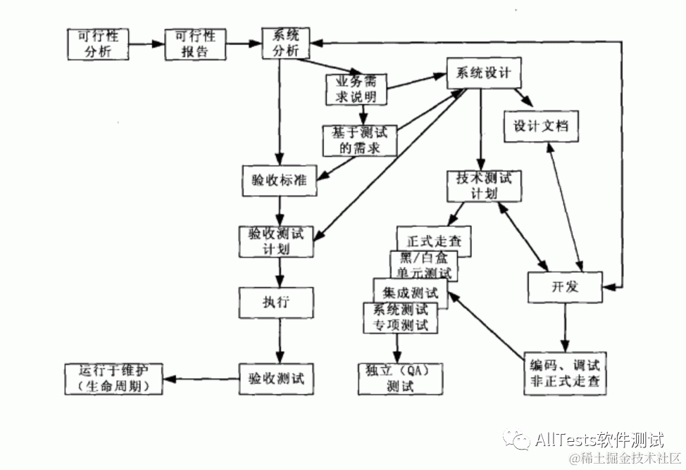 软件开发和测试保持一种线性的前后关系,需要有严格的指令表示上一阶段完全结束,才可正式开始下一个阶段。这就无法支持迭代、自发性以及变更调整。