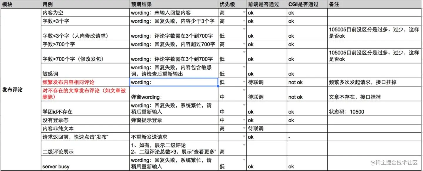 备注:以下截图,是笔者之前一个需求的自测用例(非完整版)。同样是评论功能,自测用例将近50个。*