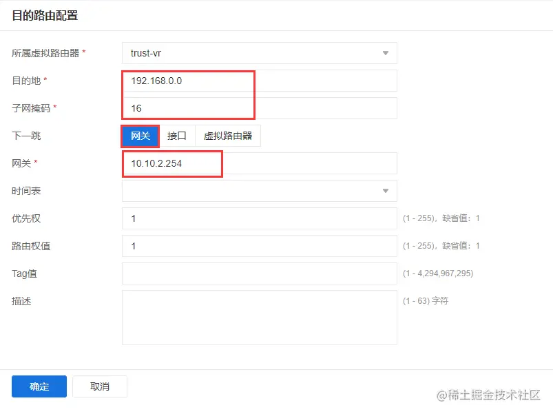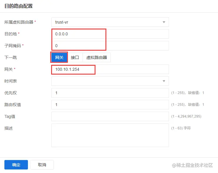 - 在网络--路由--目的路由中新建默认(缺省)路由: