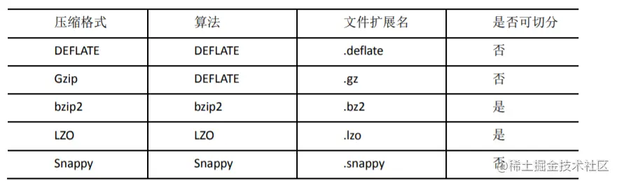 | DEFLATE | org.apache.hadoop.io.compress.DefaultCodec |