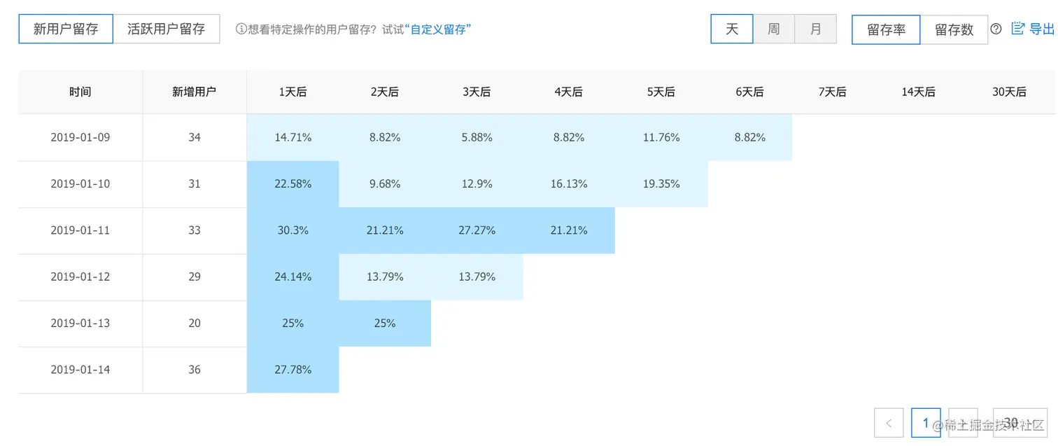 - 日/周/月 活