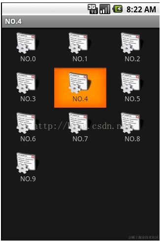main.xml源代码如下,本身是个GirdView,用于装载Item: