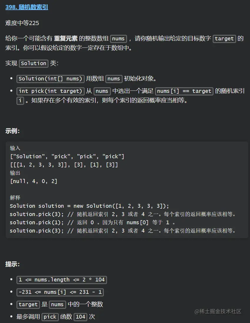 本次刷题日记的第 43 篇,力扣题为:398. 随机数索引 ,中等