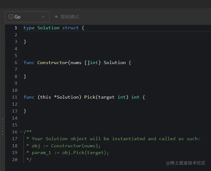 时间复杂度,初始化 hash 表的时候,时间复杂度是 O(n) ,Pick 函数获取随机索引的时间复杂度是 O(1) ,咱们是直接通过 hash 表的 key 来获取值