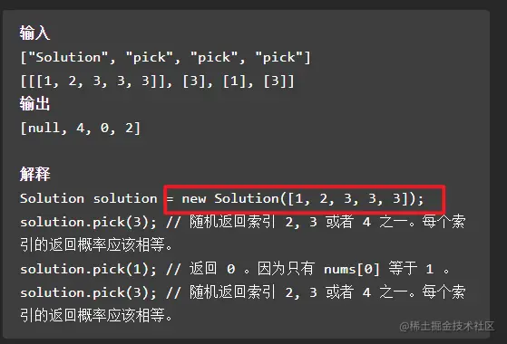 我们可以一起来分析一下这个题,题目中需要我们找到一个重复数字的随机索引,那么我们必须得知道需要在哪个范围里面进行随机