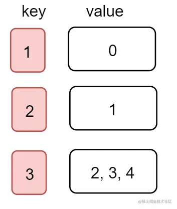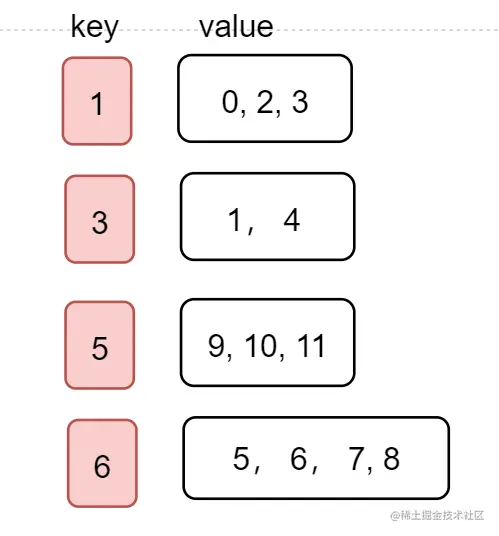 那么按照题目中给出的示例,对应的 hash 表就是这个样子的